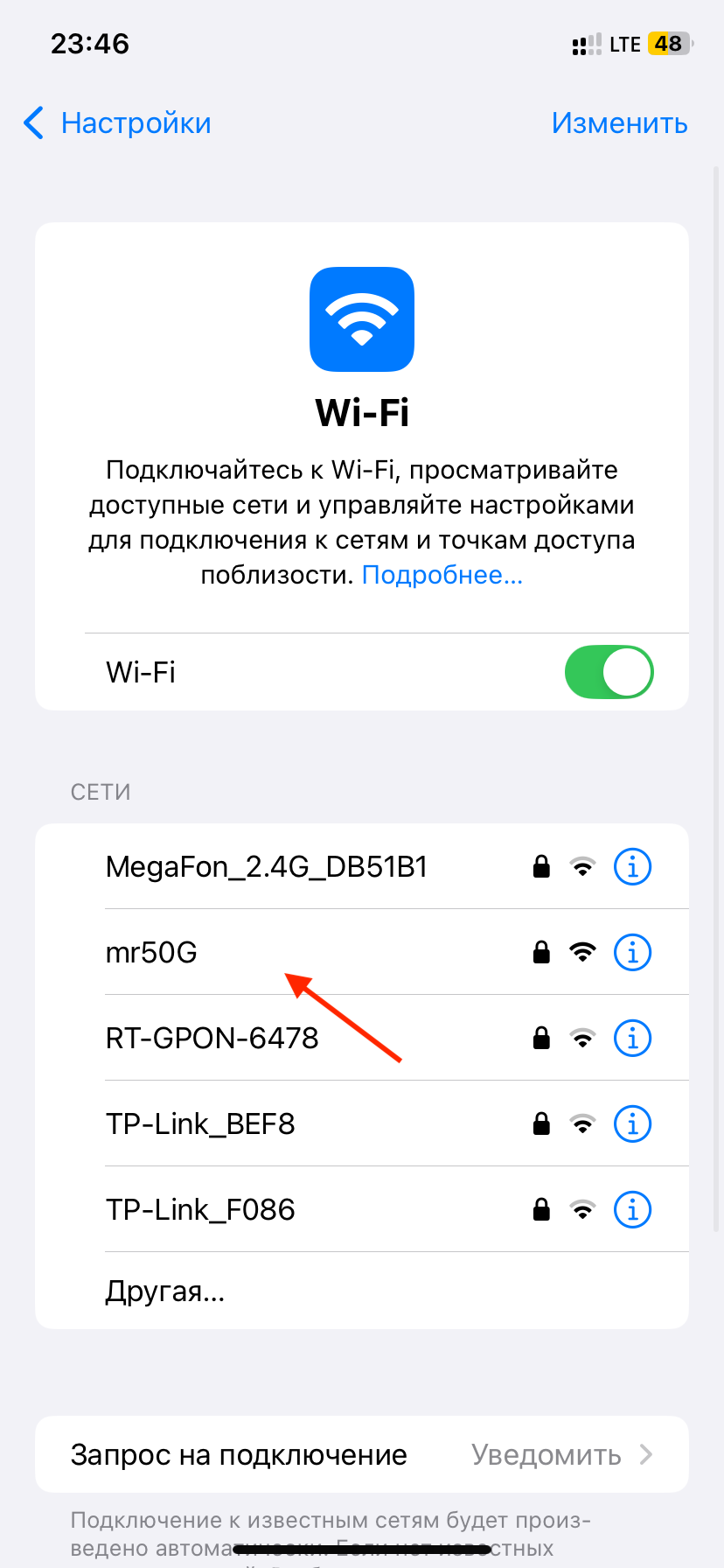 4. Выберите нужную сеть. Найдите в списке доступных сетей нужное имя (SSID) и нажмите на него. Если сеть скрыта, нажмите «Другая» (Other) и введите имя сети вручную.