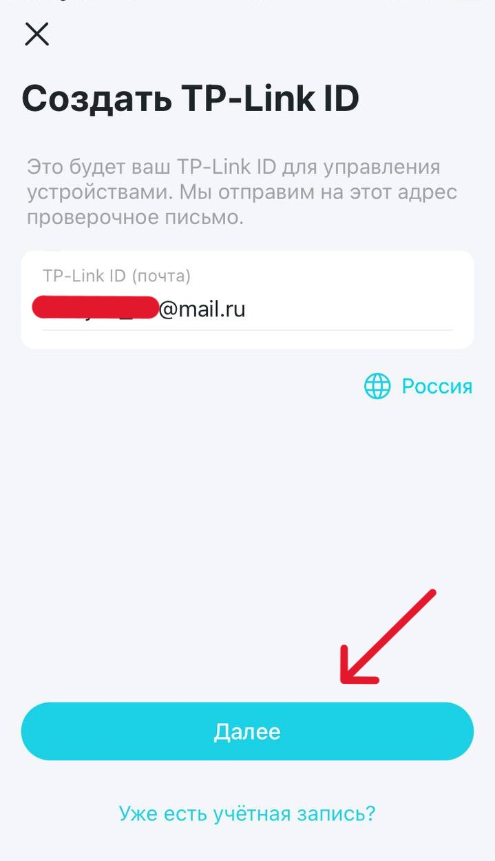 2. После входа в приложение и подтверждения согласия об обработке персональных данных, требуется создать учетную запись TP-Link ID.